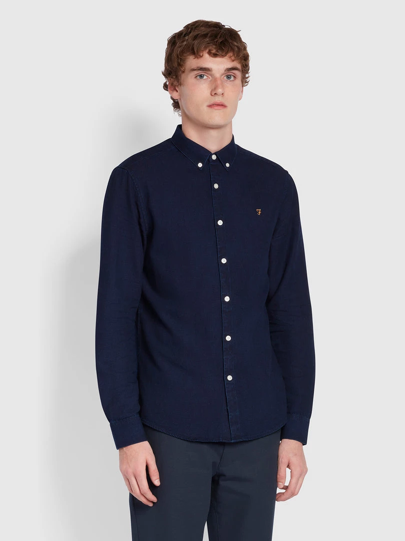 Be the first to review “Farah Brewer Slim Fit Organic Cotton Indigo Oxford Shirt In Mid Indigo” Cancel reply