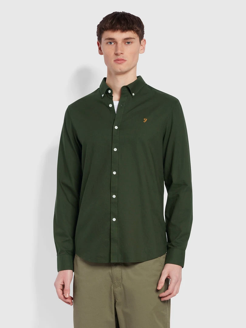 Farah Brewer Slim Fit Organic Cotton Oxford Shirt In Evergreen CLOTHING