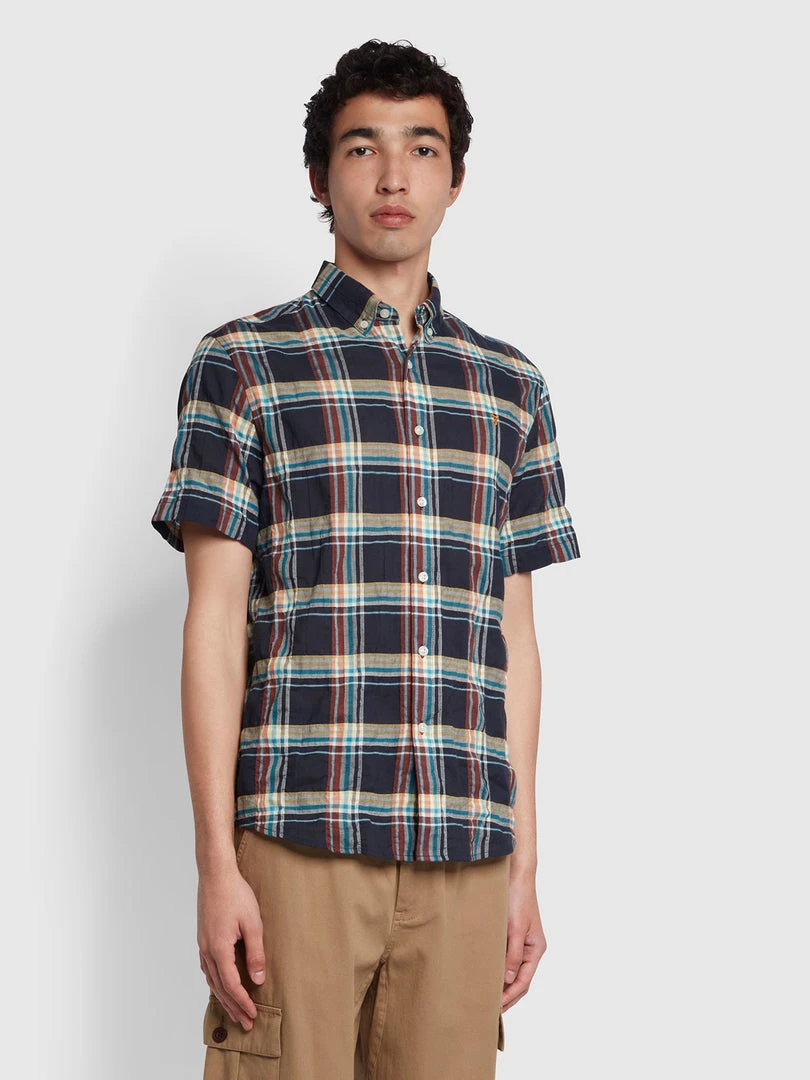 Farah Cashell Casual Fit Short Sleeve Organic Cotton Shirt In True Navy NEW IN