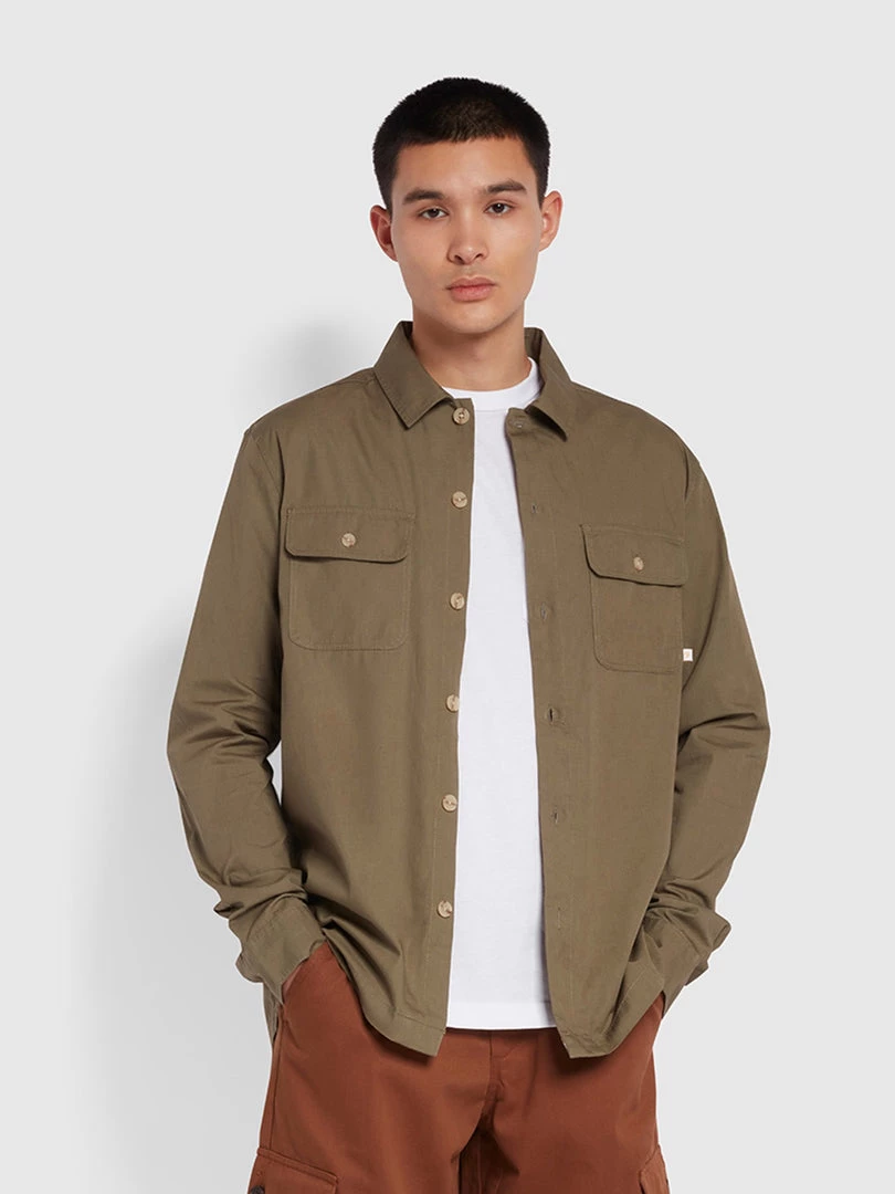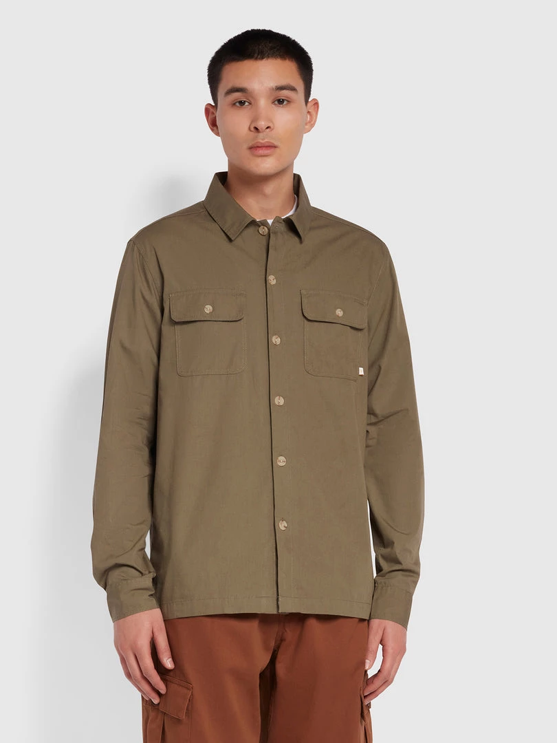 Farah CLOTHING Rockfield Relaxed Fit Organic Cotton Shacket In Vintage Green