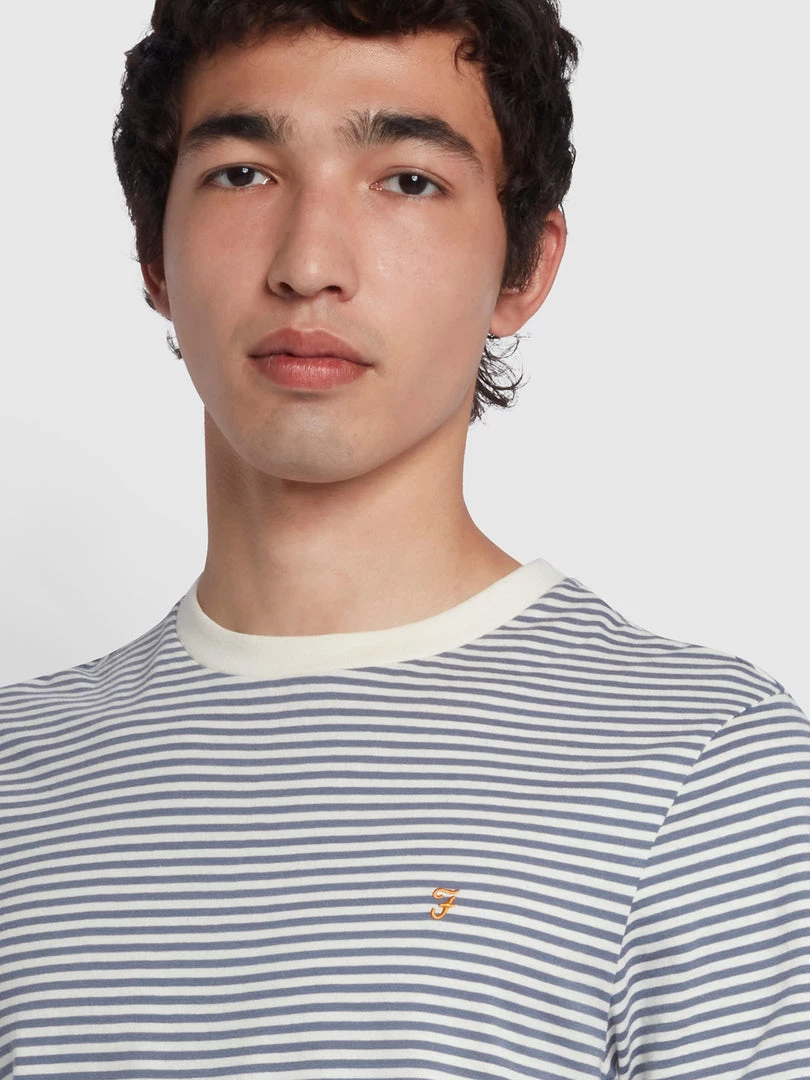Farah Daytona Regular Fit Striped Organic Cotton T-Shirt In Battleship Blue