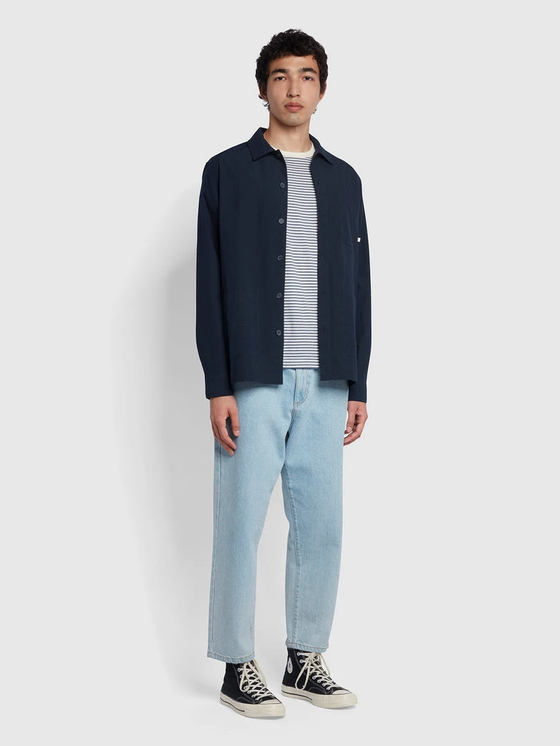 Farah Brewer Slim Fit Organic Cotton Oxford Shirt In Battleship Blue NEW IN