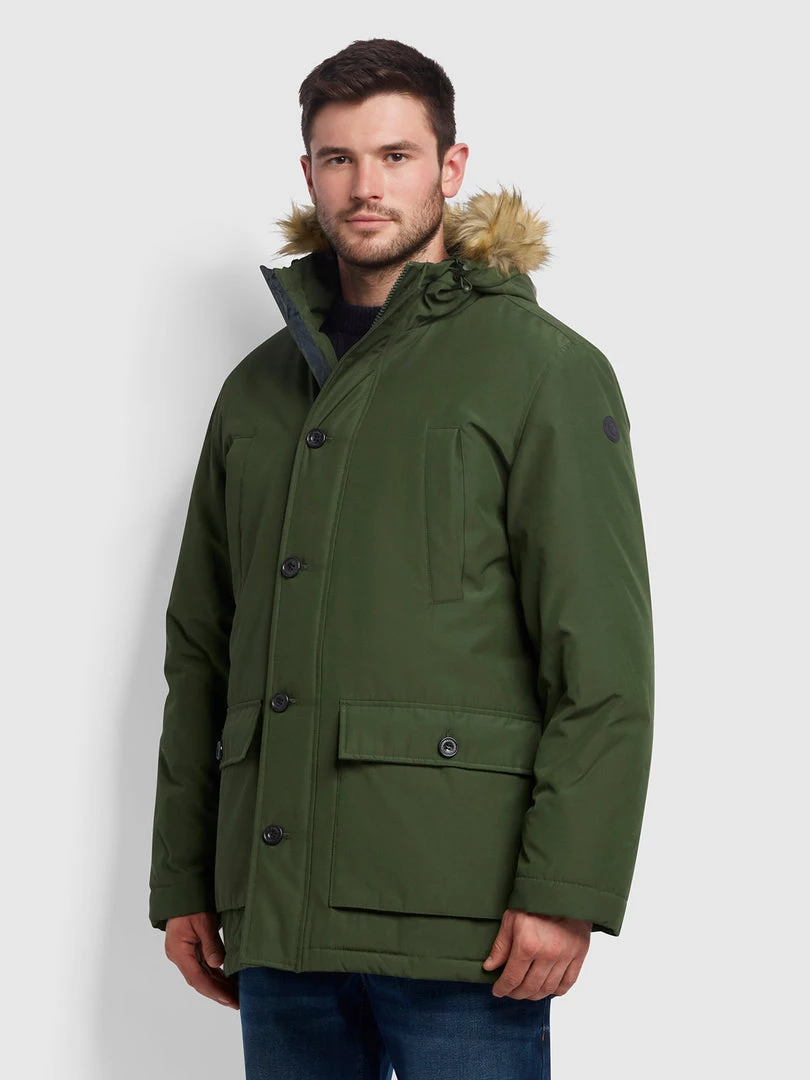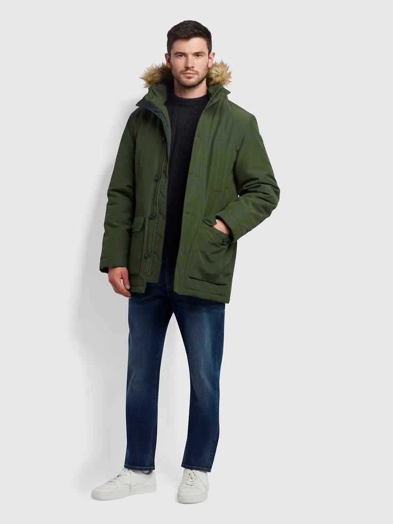 Farah Ellwood Parka In Dark Olive Farah Mainline