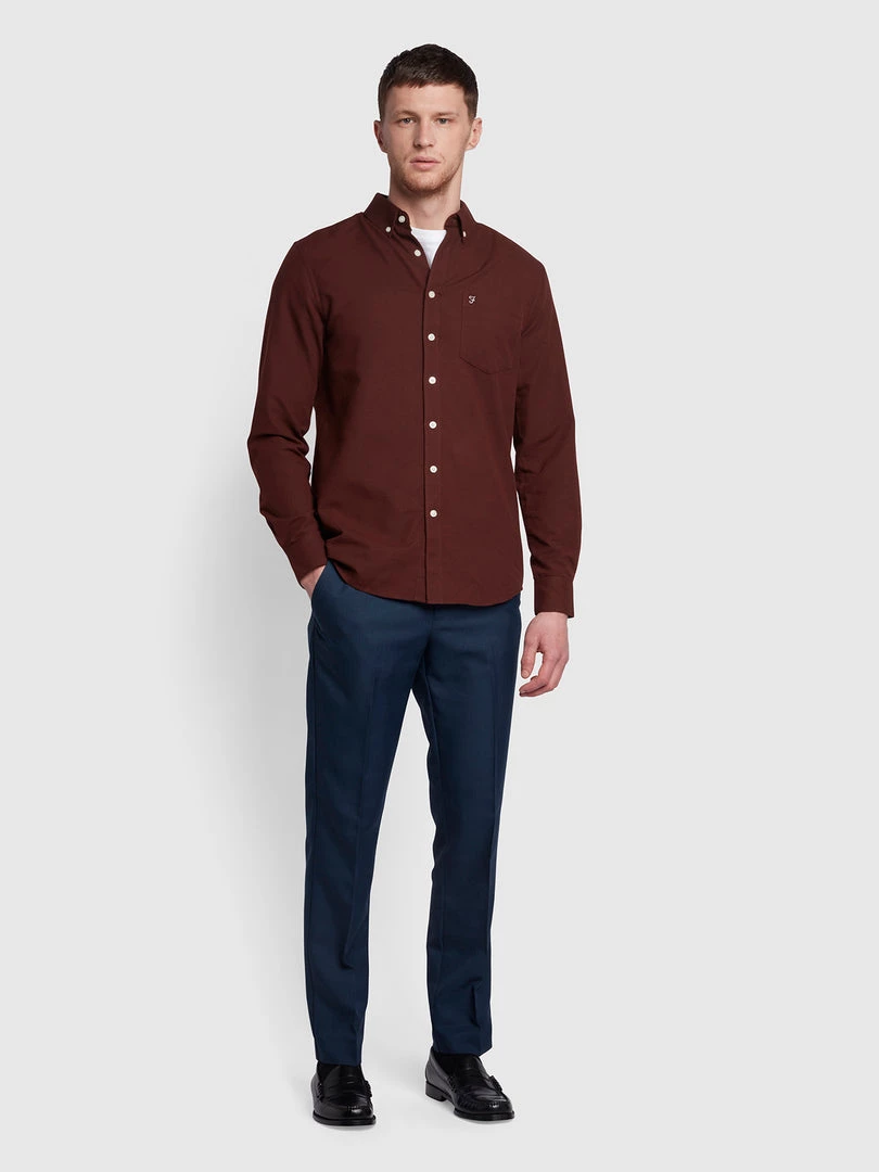 Farah Brewer Slim Fit Organic Cotton Oxford Shirt In Mid Blue CLOTHING