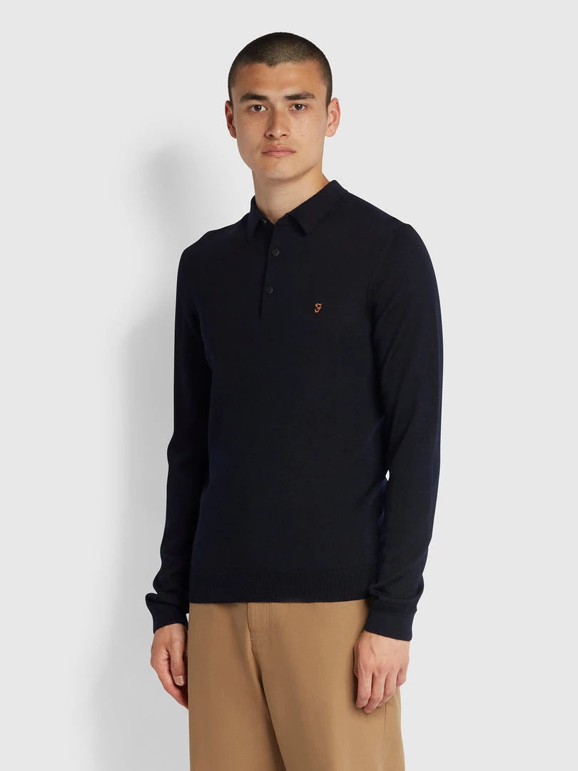 Farah Glenarm Slim Fit Polo Sweater In True Navy Jeans