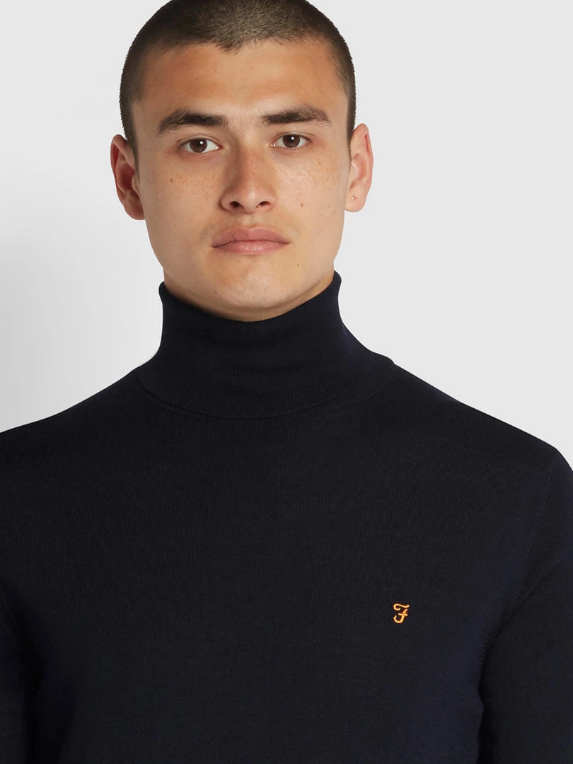 Farah Gosforth Merino Wool Roll Neck Jumper In True Navy