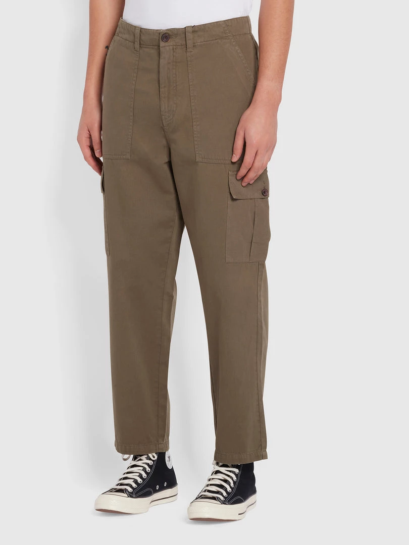 Farah Hawtin Relaxed Fit Twill Cargo Trousers In Vintage Green Trousers And Chinos