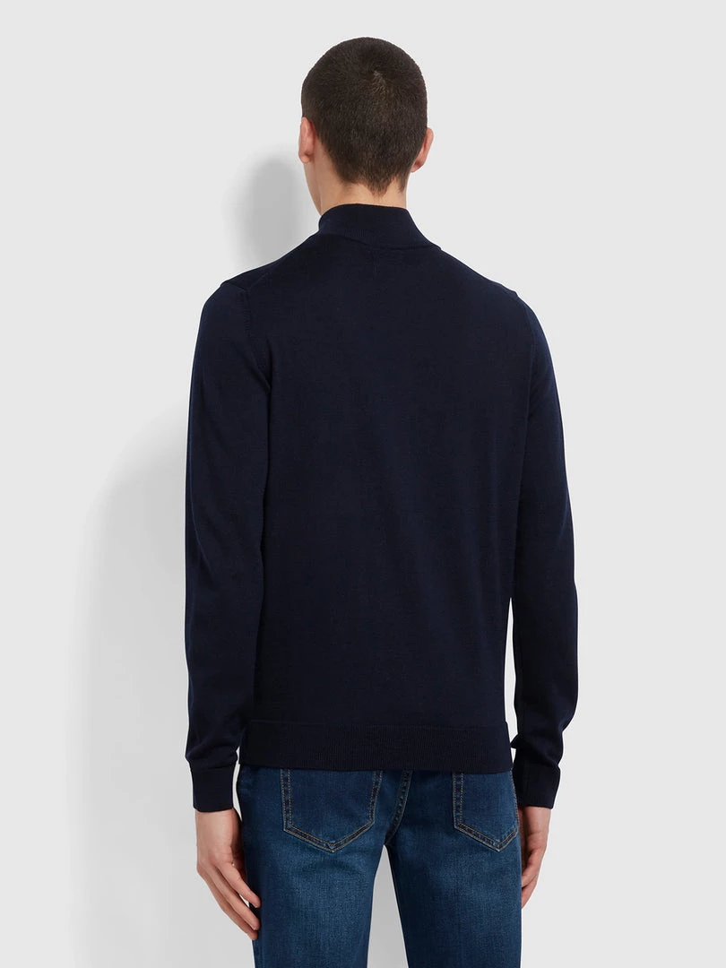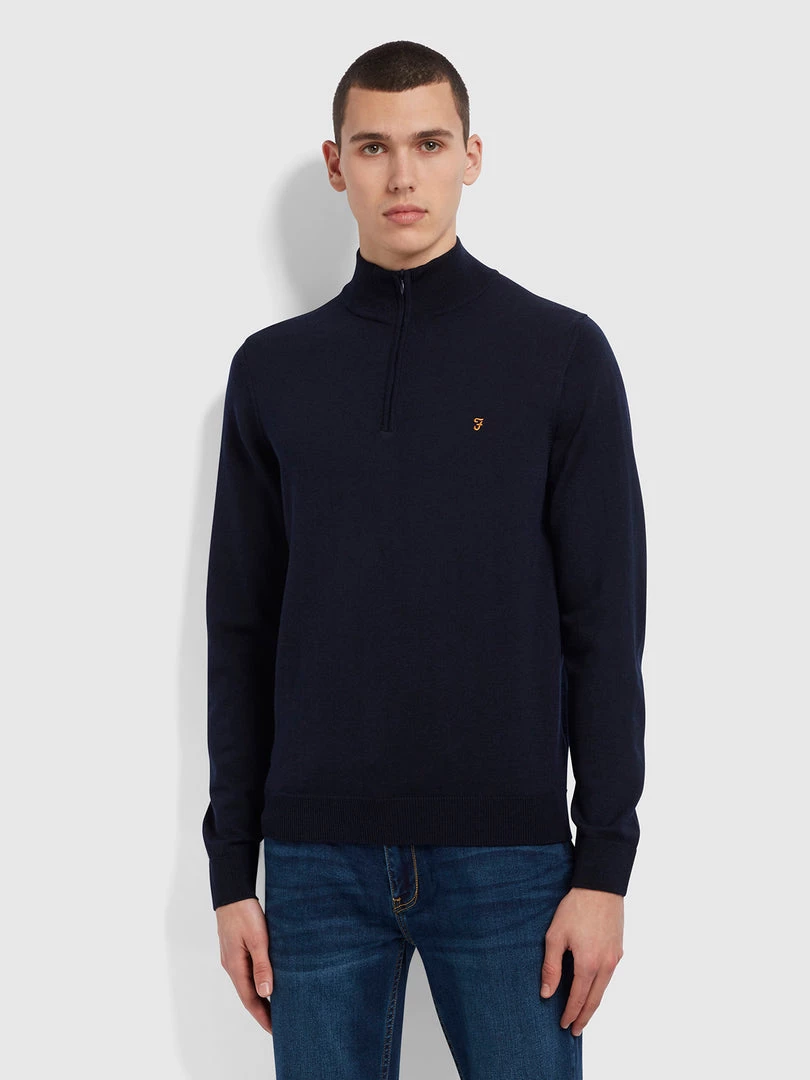 Farah Jeans Redchurch Merino Wool Quarter Zip Jumper In True Navy