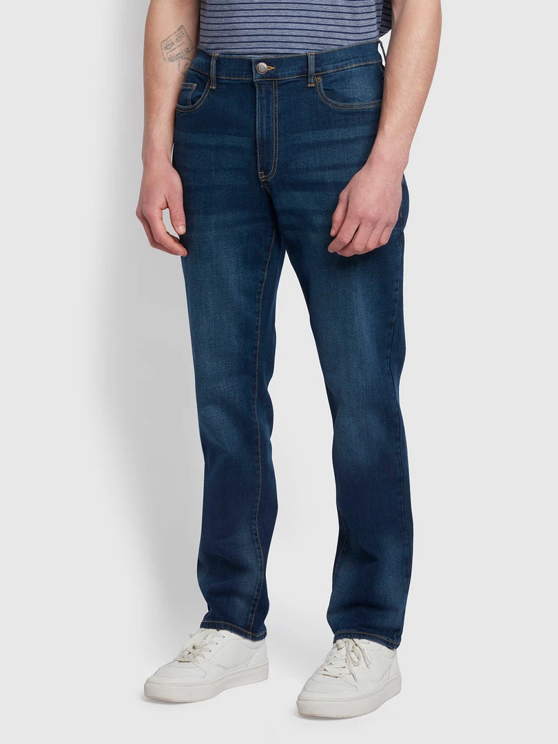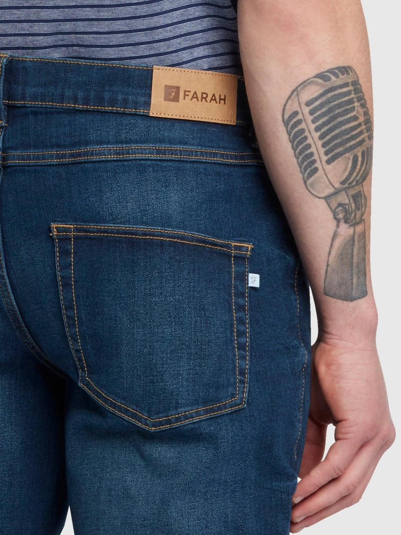 Farah Lawson Regular Fit Stretch Jeans In Mid Denim Farah Mainline