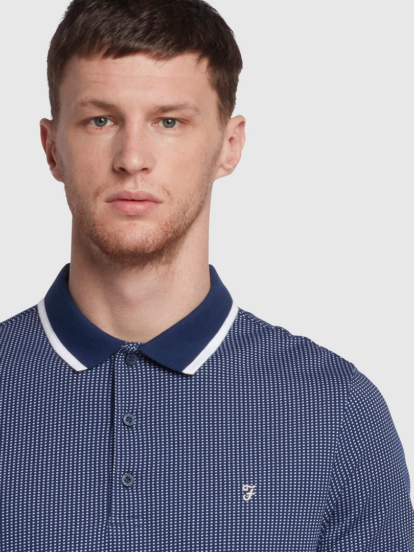 Farah Marshall Short Sleeve Polo Shirt In Midnight Blue