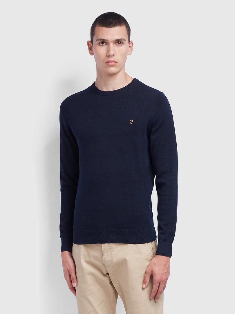 Farah Mullen Cotton Crew Neck Jumper In True Navy Jeans