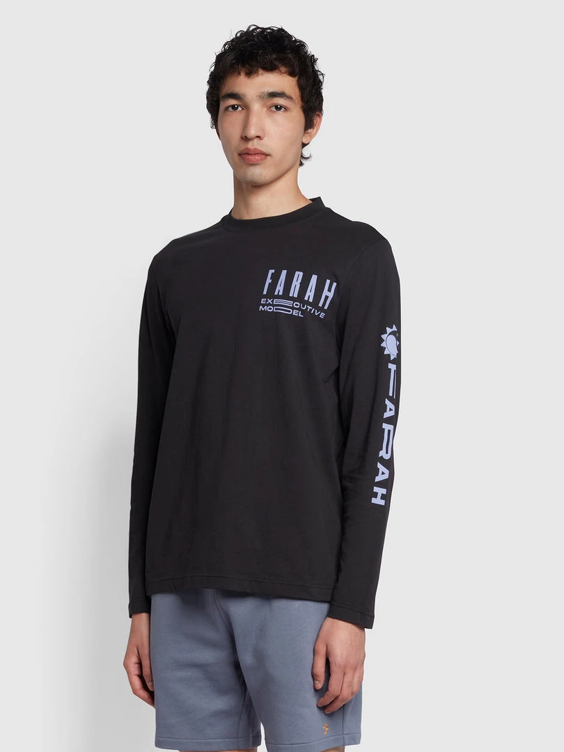 Farah O’Donnell Regular Fit Long Sleeve Organic Cotton T-Shirt In Black NEW IN