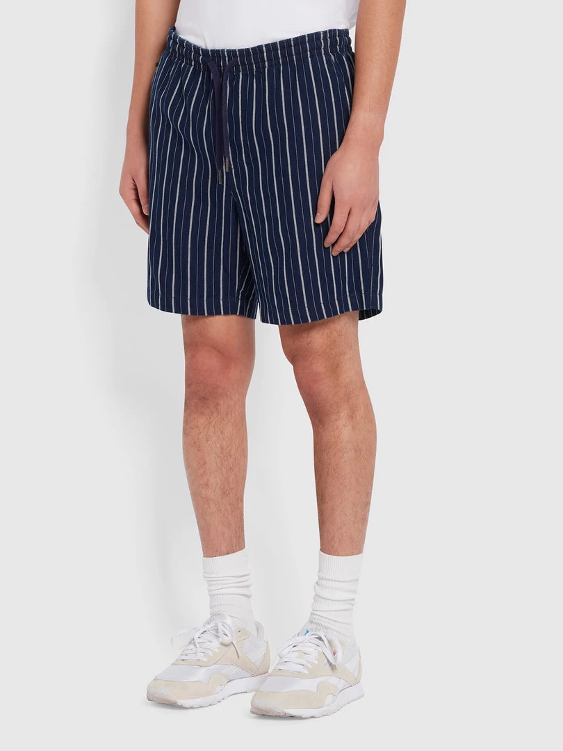 Farah Redwald Indigo Stripe Organic Cotton Shorts In Mid Indigo