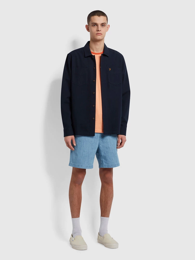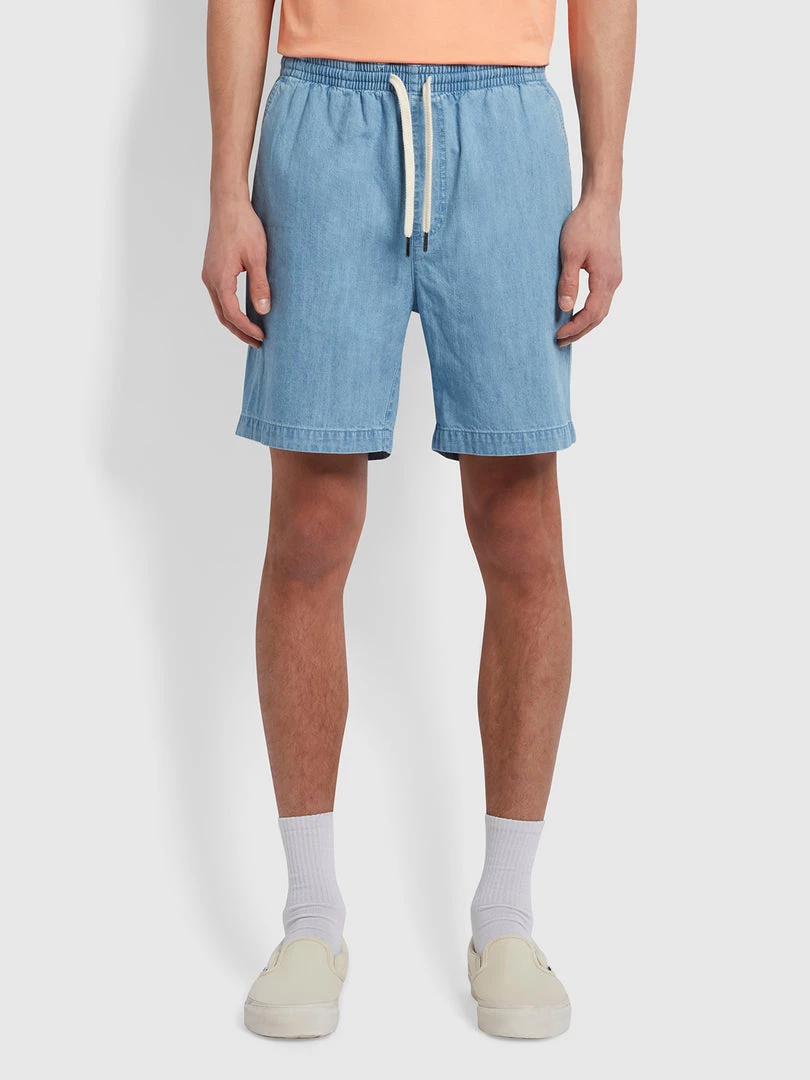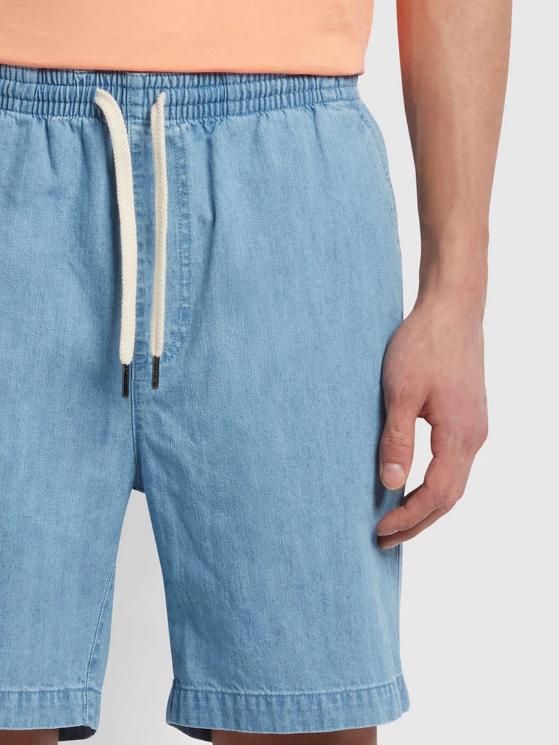 Farah Redwald Organic Denim Drawstring Shorts In Stone Wash