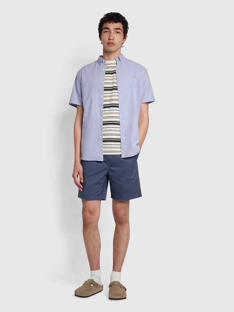 Farah Brewer Slim Fit Short Sleeve Organic Cotton Oxford Shirt In Navy CLOTHING