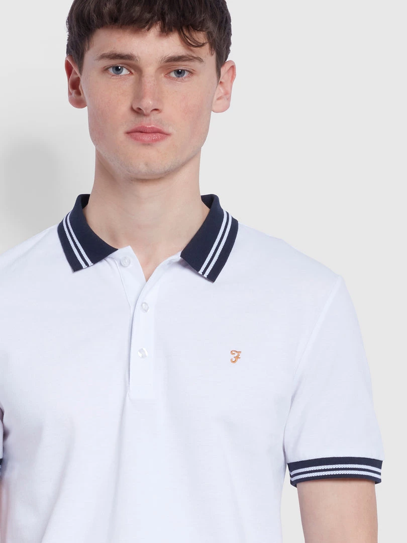 Farah Stanton Slim Fit Tipped Organic Cotton Polo Shirt In White CLOTHING