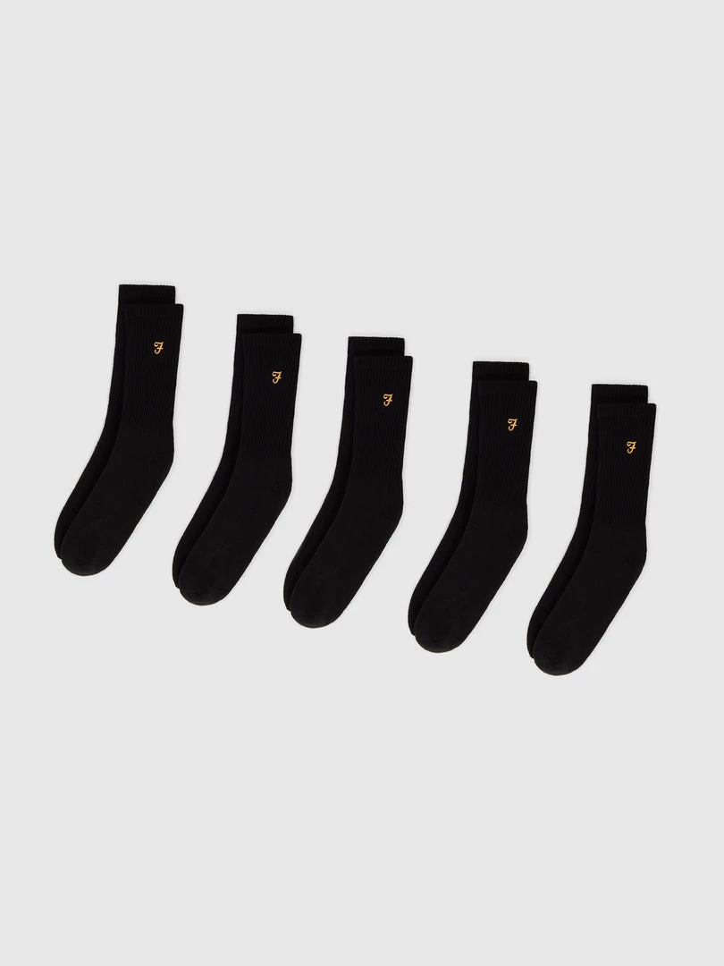 Farah Tommley 5 Pack Sports Crew Socks In Black Jeans