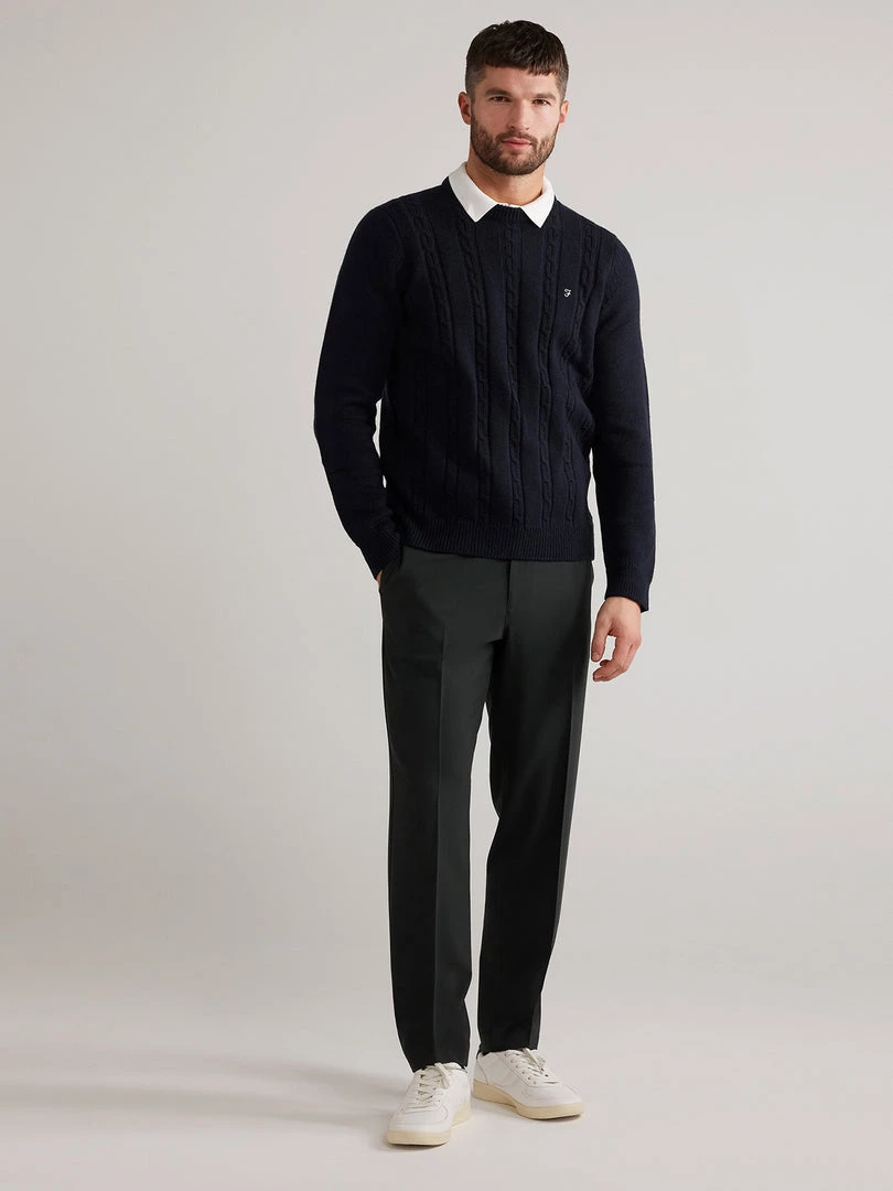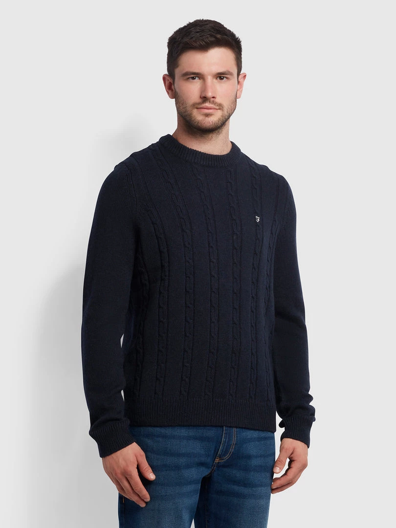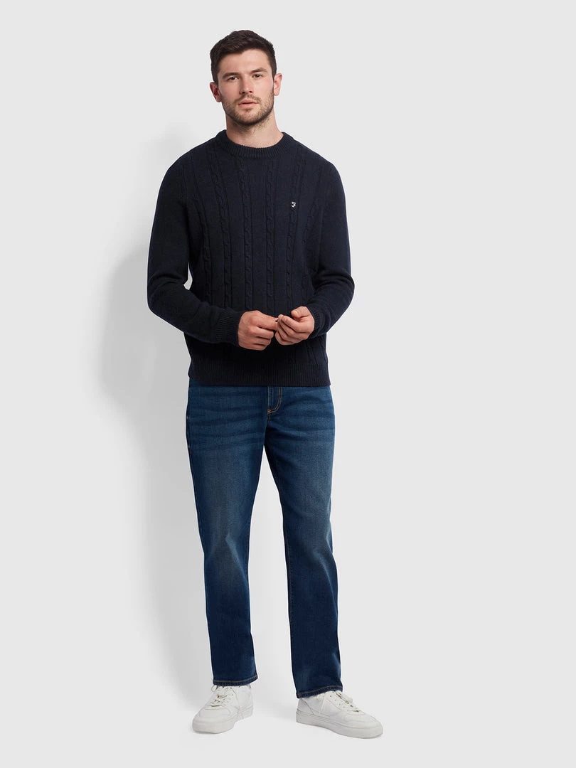Farah Winston Crew Neck Jumper In True Navy Farah Mainline