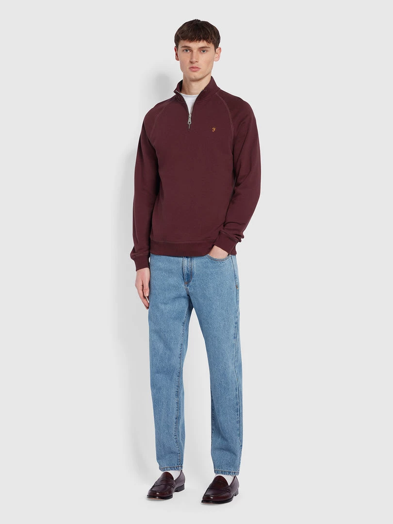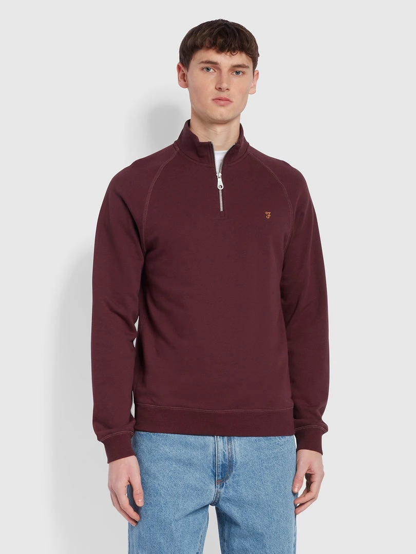 Jim Organic Cotton Quarter Zip Sweatshirt In Farah Red Marl CLOTHING